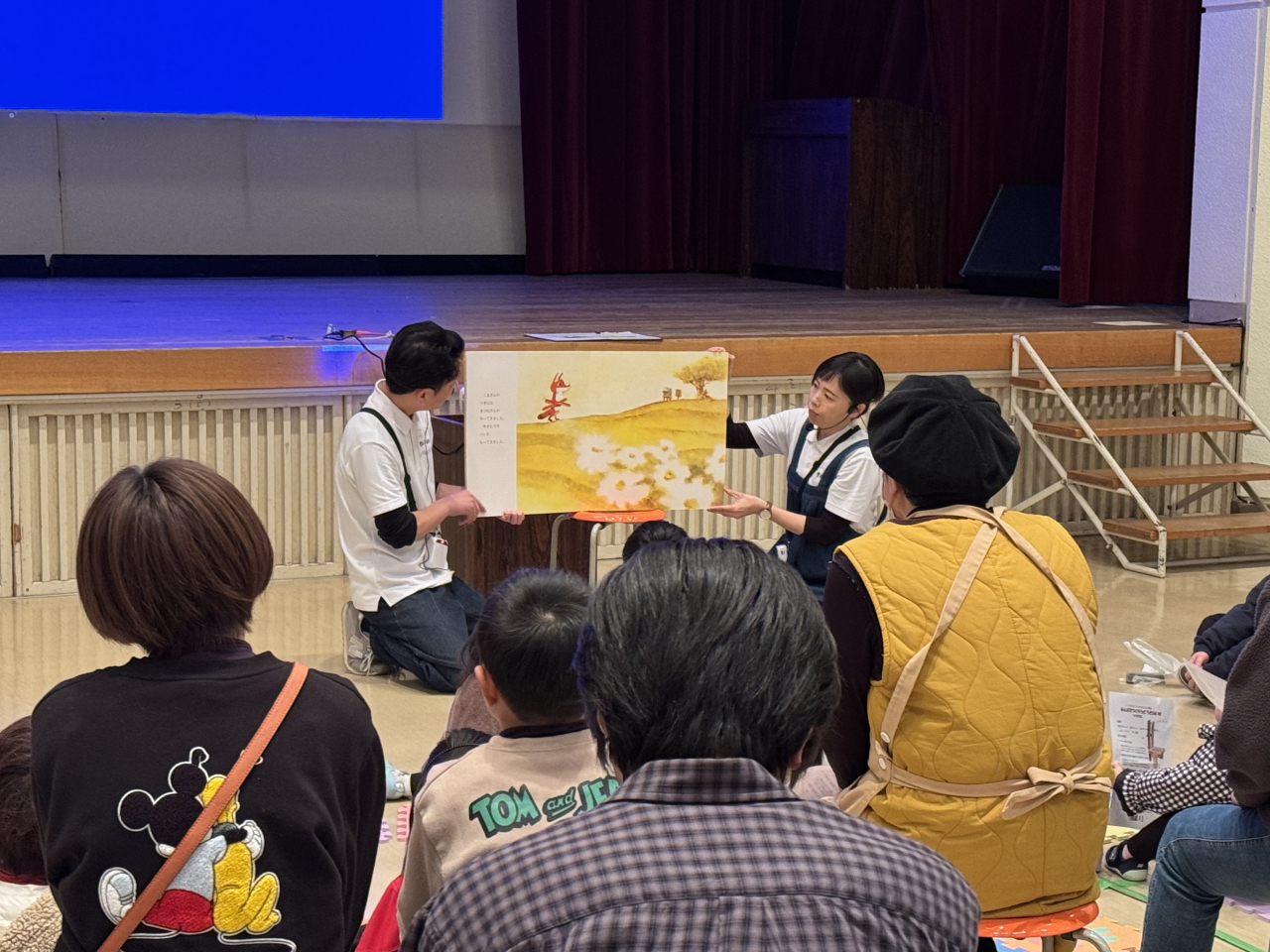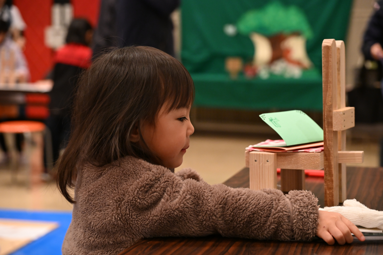 絵本『どうぞのいす』の読み聞かせを行いました。温かみのある語りに、参加者は物語の世界に引き込まれ、会場は和やかな雰囲気に包まれました。